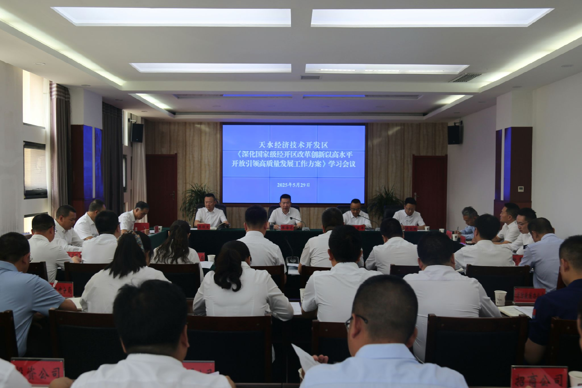 5月29日,国家级天水经开区组织召开《深化国家级经济技术开发区改革创新以高水平开放引领高质量发展工作方案》集中学习会议,经开区党工委、管委会班子成员及各部门(单位)、各派驻机构主要负责人参加学习。